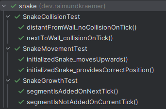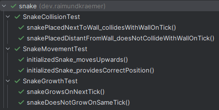 SnakeMovementTestSnakeCollisionTestSnakeGrowthTest